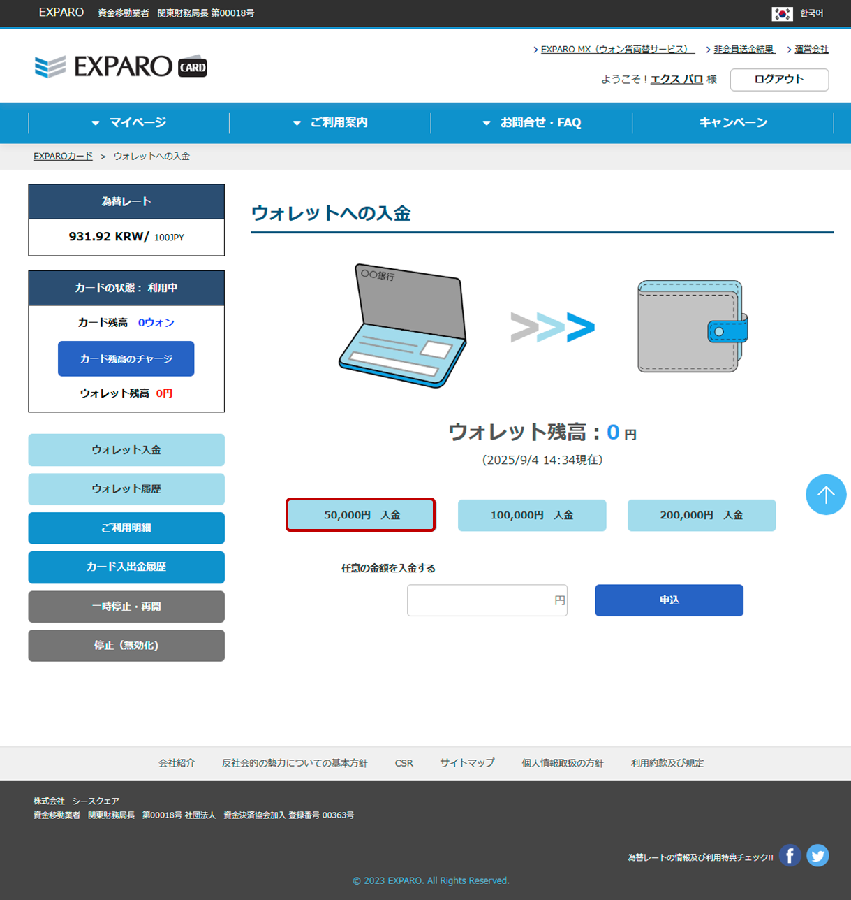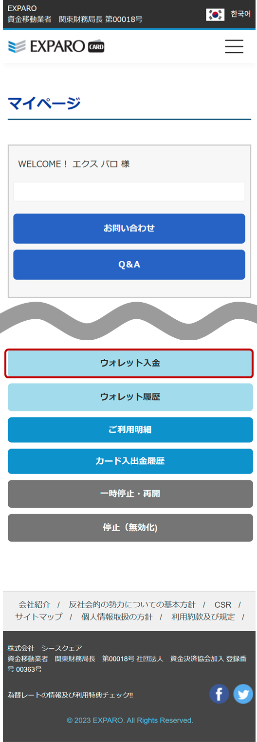 ウォレット入金