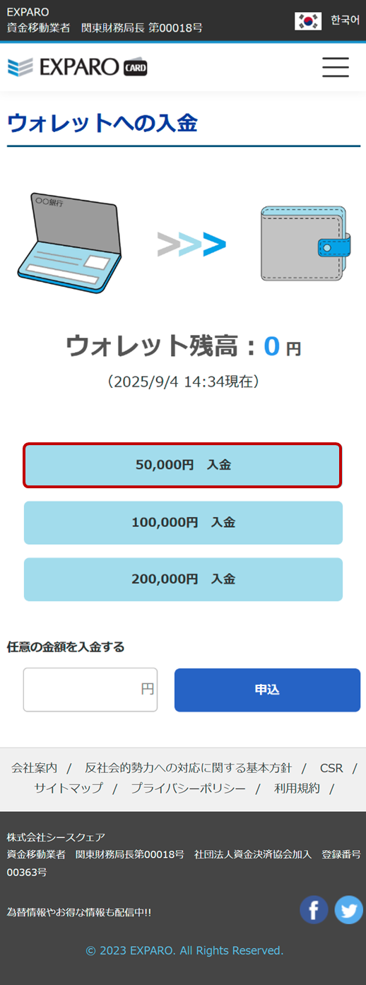 Step3入金金額を選択、または入力