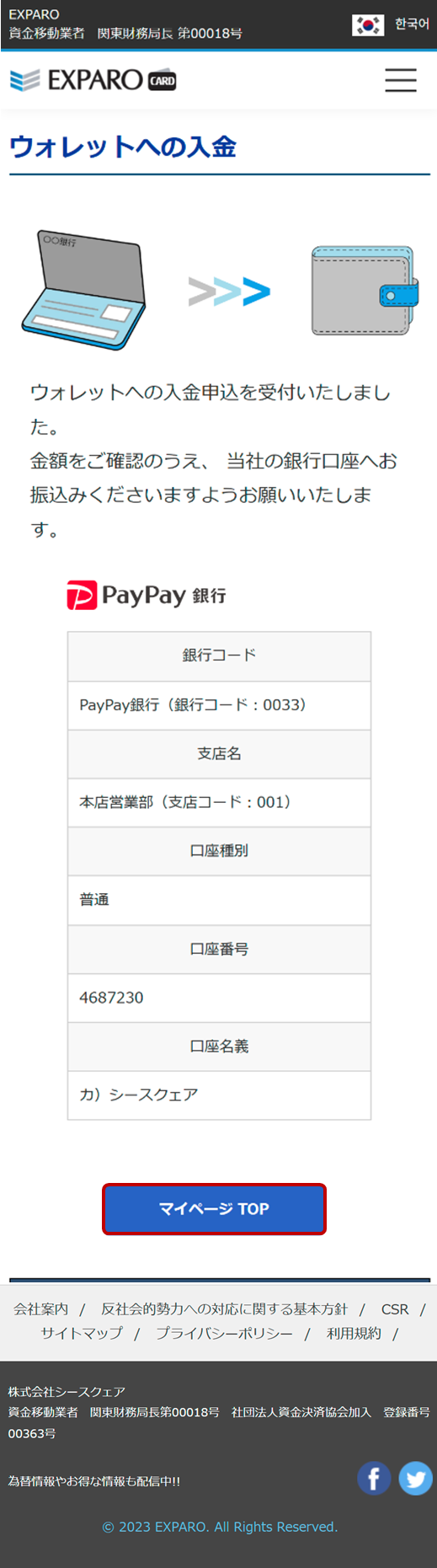 ※システムの都合上、ご登録のお名前と振込口座名義が異なる場合は、ウォレットに自動で反映されません。