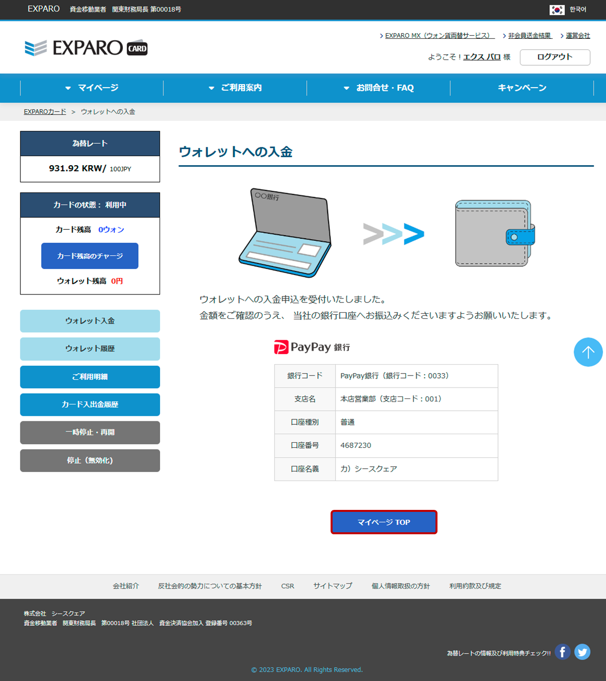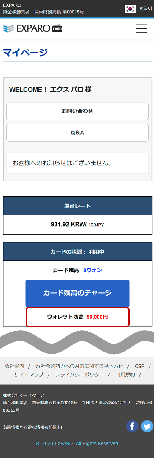 Step6マイページからウォレット残高を確認
