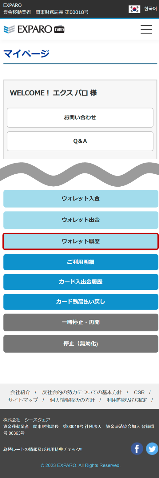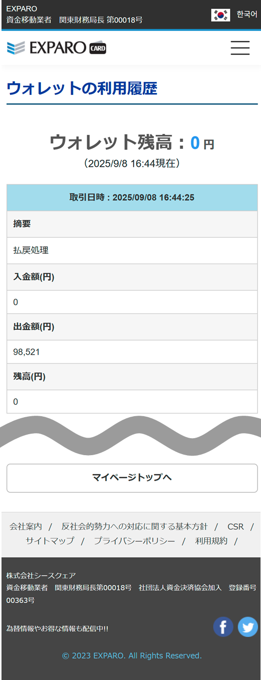 EXPARO資金移動業者 関東財務局長 第00018号