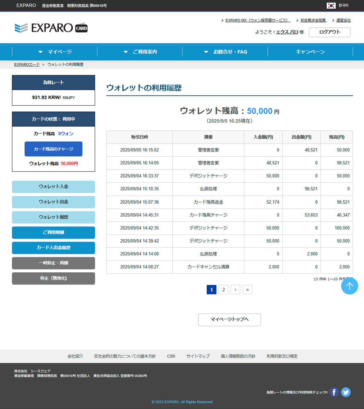 Step3ウォレットの入出金履歴確認