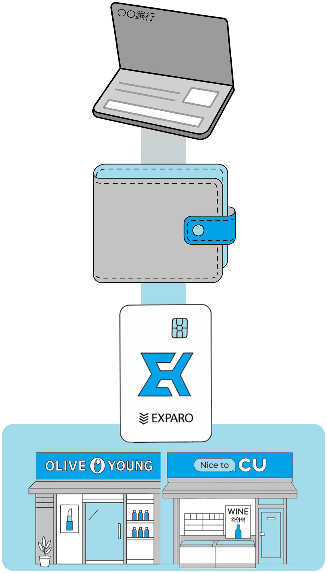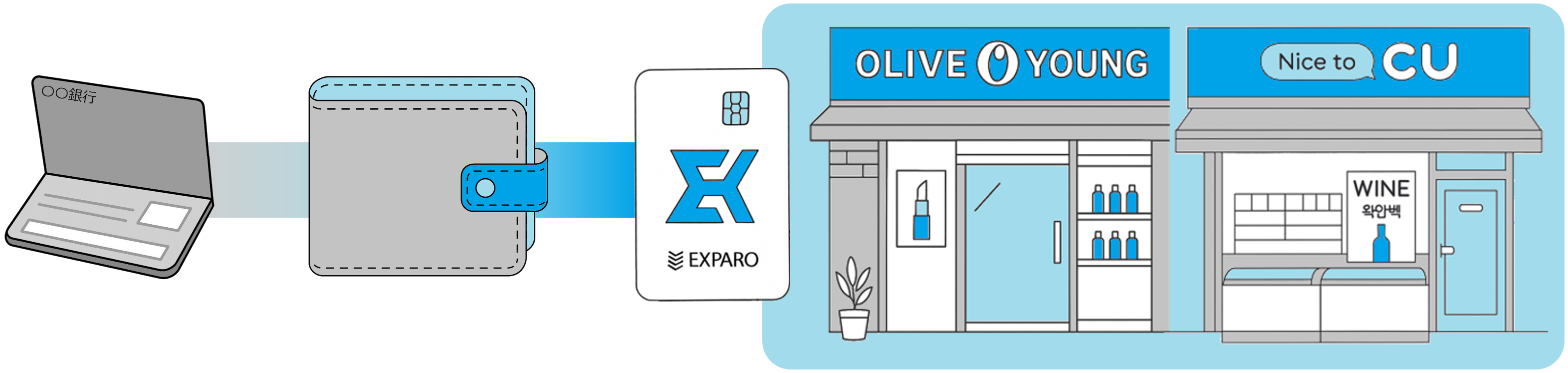 韓国へ出発する前に、EXPAROカードで買い物や食事、交通機関の利用ができるよう準備しましょう。