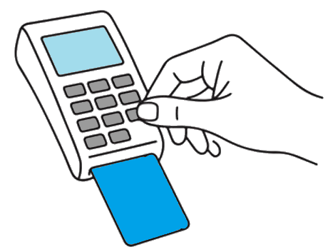 端末にカードを差し込んで決済します。