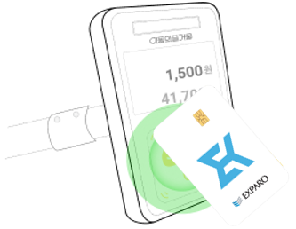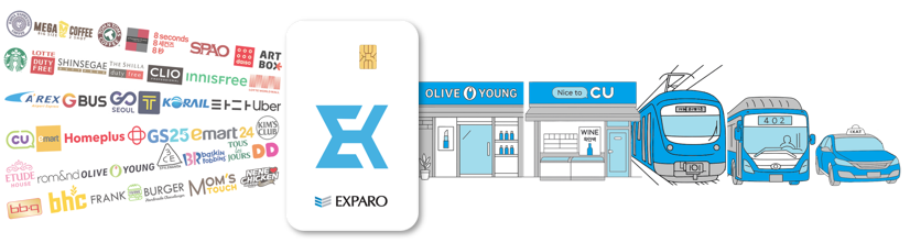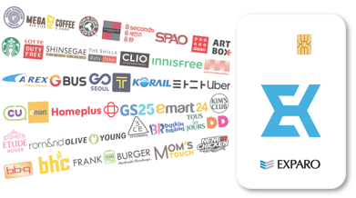 EXPAROカードは、カード端末のおいてある韓国内299万店舗でお使いいただけるプリペイドカードです。